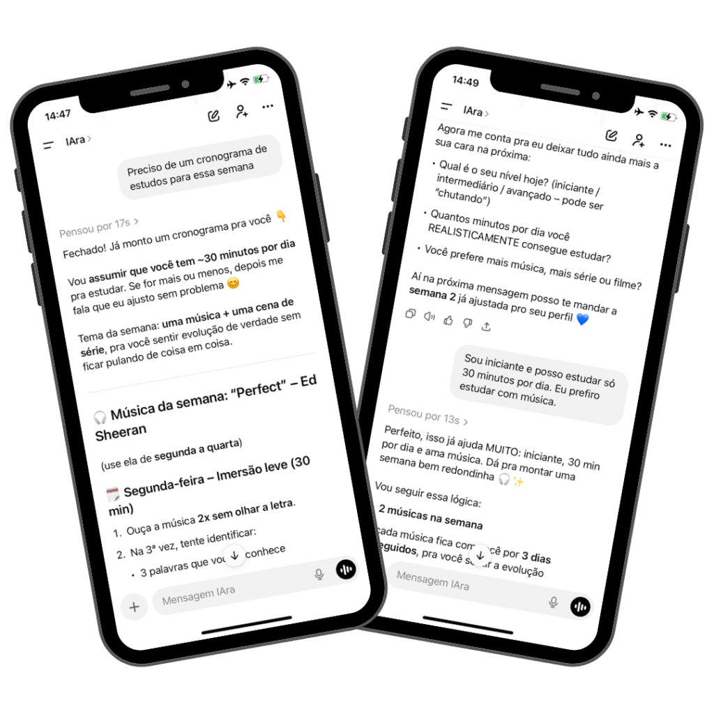 Foi para resolver isso que criamos a IAra, sua professora digital de inglês gratuita.